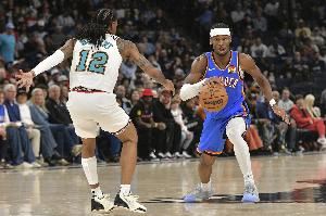 体育资讯11月10日讯 NBA常规赛,雷霆半场51-62落后灰熊。