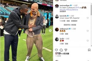 体育资讯11月17日讯 皇马后卫吕迪格更新社媒动态,晒出现场观战NFL(美国职业橄榄球联盟)西班牙赛的照片。
