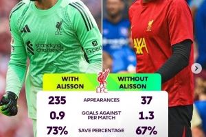 英超官方盘点阿利森缺战时利物浦数据,场均丢球增加0.4球 体育资讯10月4日讯本轮英超利物浦将迎战切尔西。由于阿利森受伤,玛玛达什维利很可能在本场临危受命。英 2025-10-04